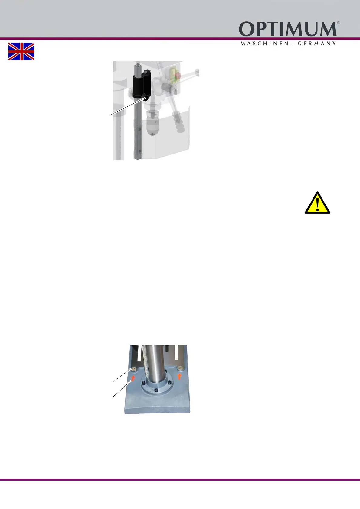 Fix the foot of the drilling machine to the substructure with the holes pre-drilled for this pur-