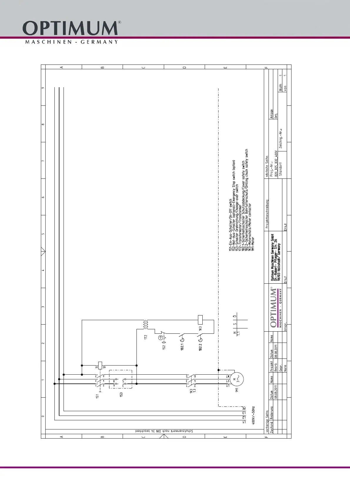 Optimum OPTIdrill B20 - Schaltplan - Wiring Diagram B20; B25; B32 (~400 V)