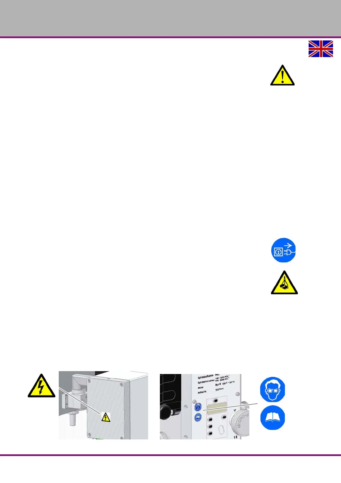 Unplug the main switch before starting any maintenance or repair work.