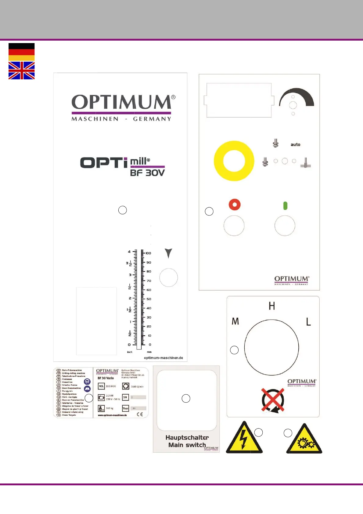 Optimum Optimill BF 30V - 6.9 Maschinenschilder - Machine Labels