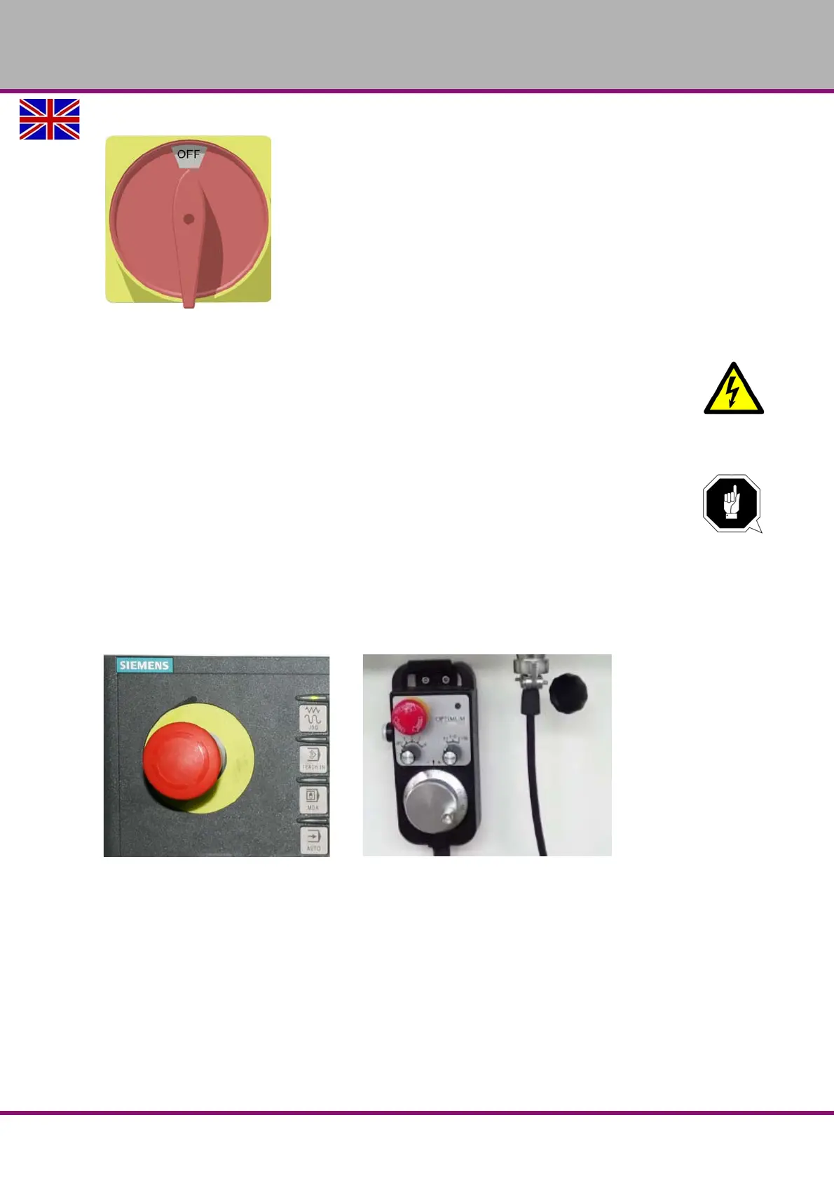 After having actuated the EMERGENCY-STOP mushroom switch, turn the knob of the particu-