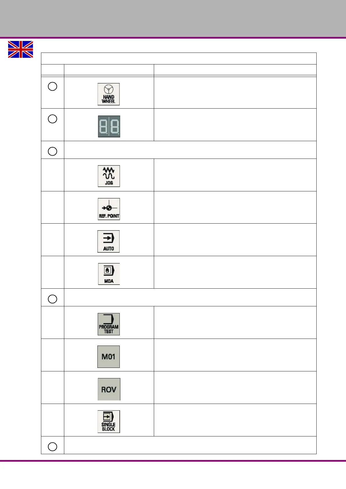 Operating mode keys (all with LED status indicators)