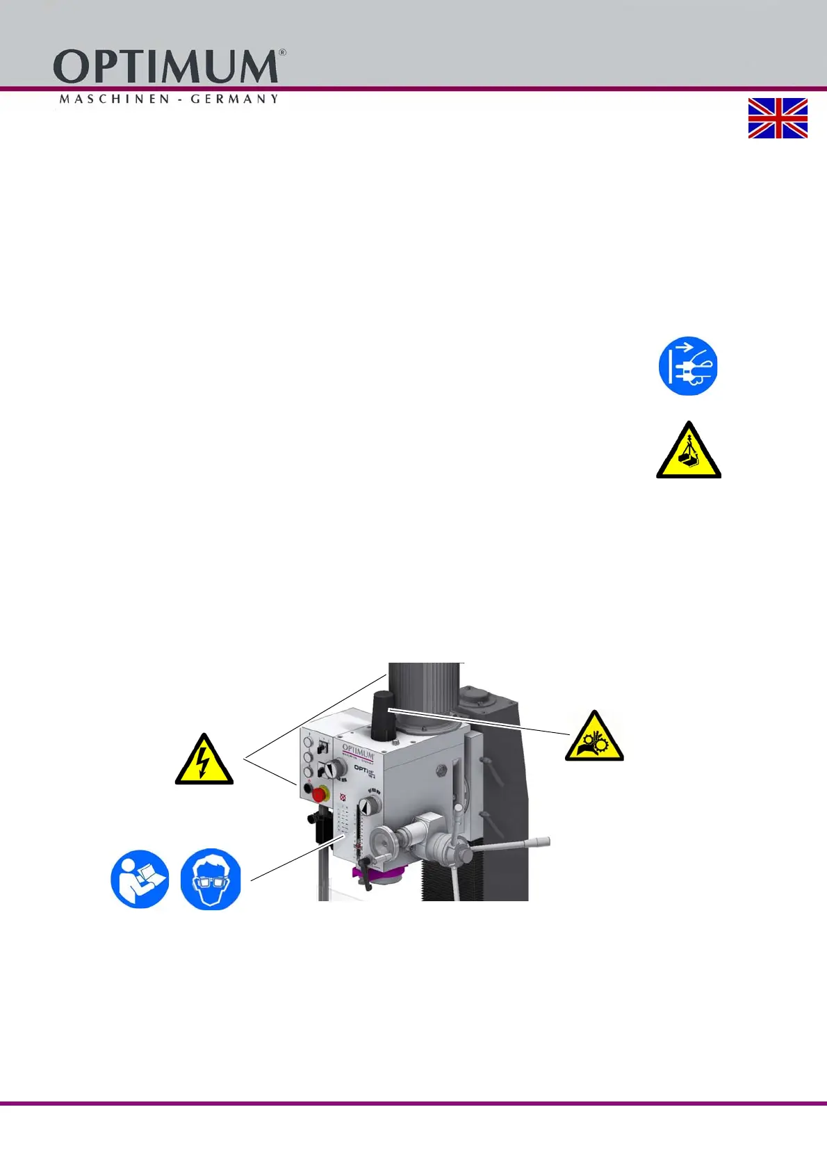 the event of an emergency. If there is a fault in the power supply, switch off the milling machine