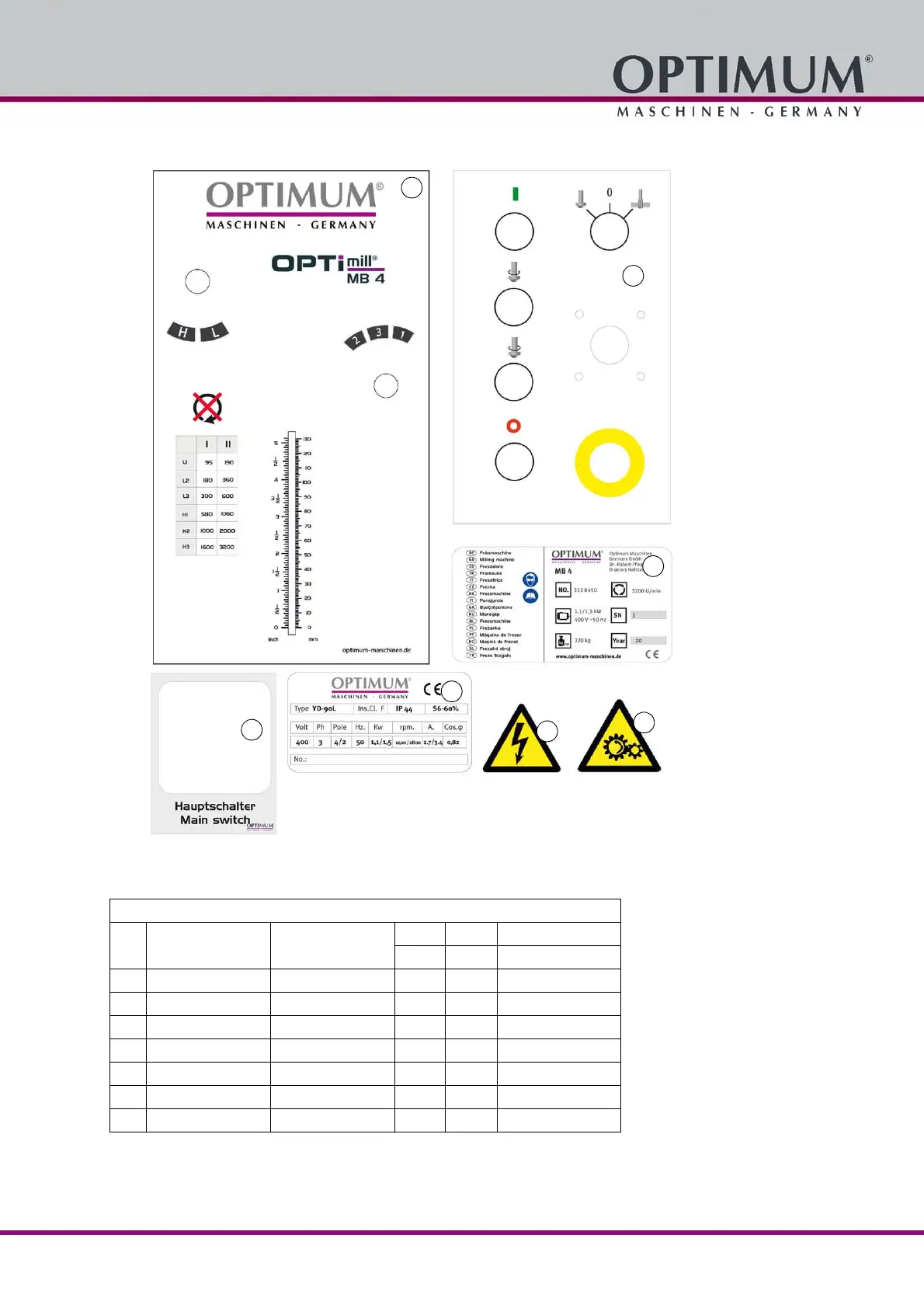 Ersatzteilliste Maschinenschilder - Spare part list machine labels