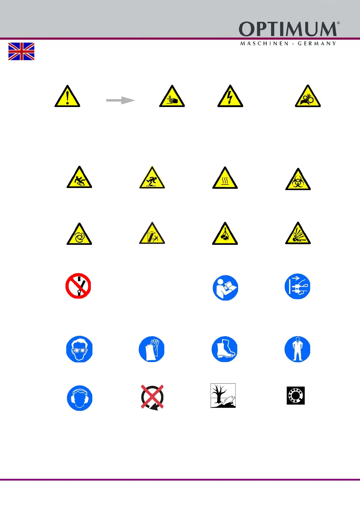 Warning: risk of stumbling! Warning: hot surface! Warning: biological hazard!