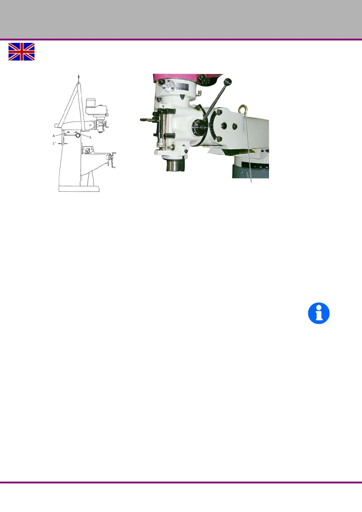 Raise the multi-milling machine, preferably using the eye bolt (1) located on the spindle