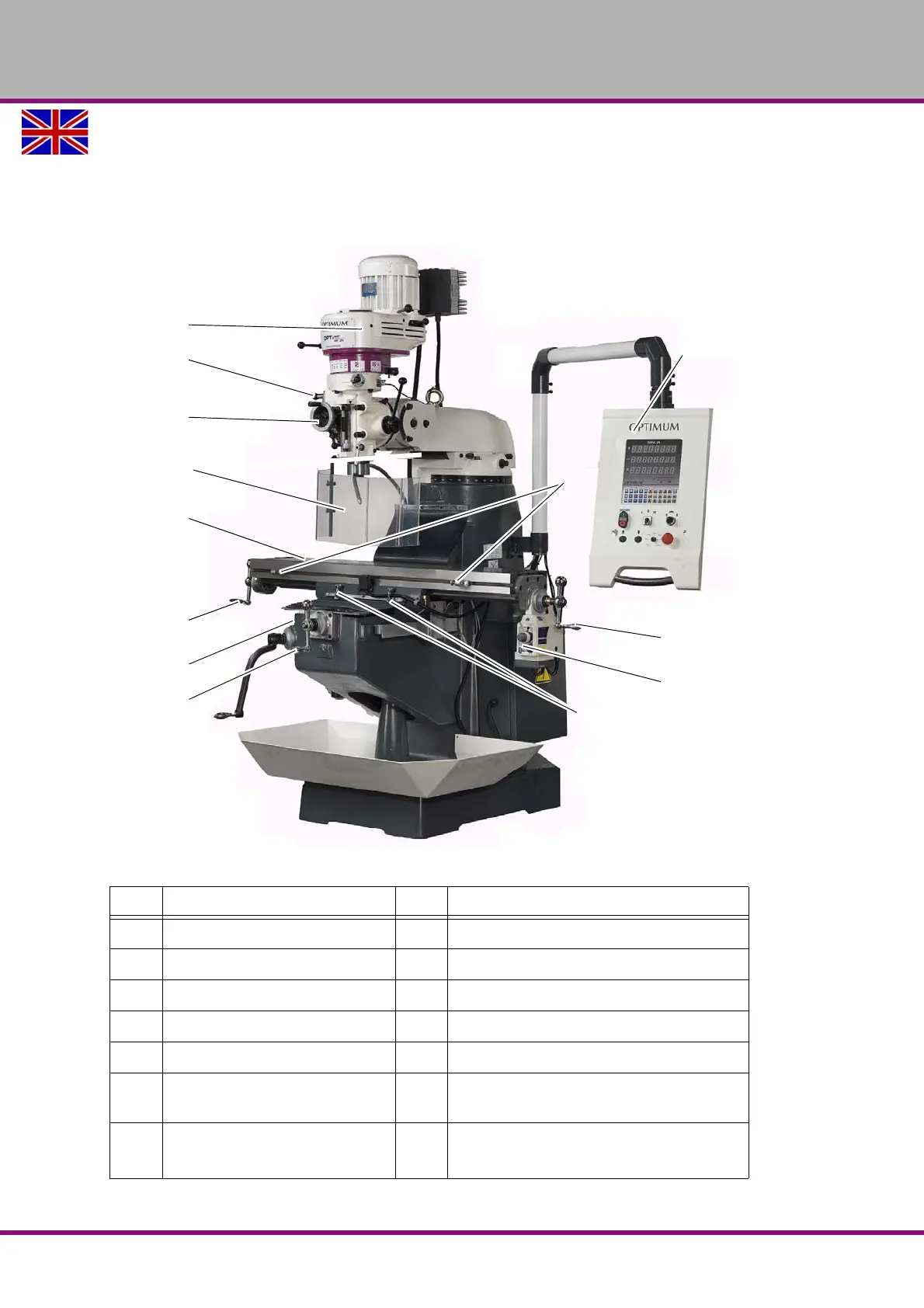 1 Spindle head 8 Wheel for cross table (Y-axis)