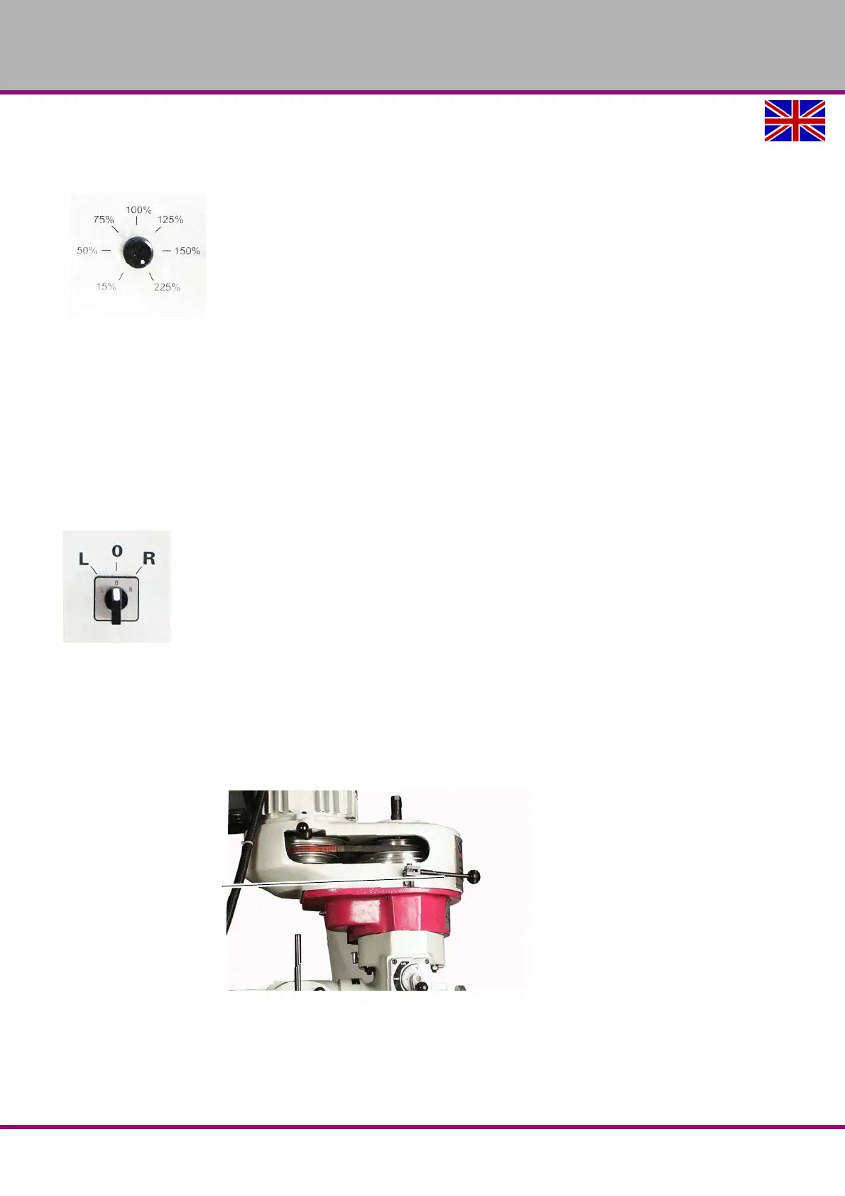The motor speed can be set from the control panel. The speed can be varied from 15 to 225%.
