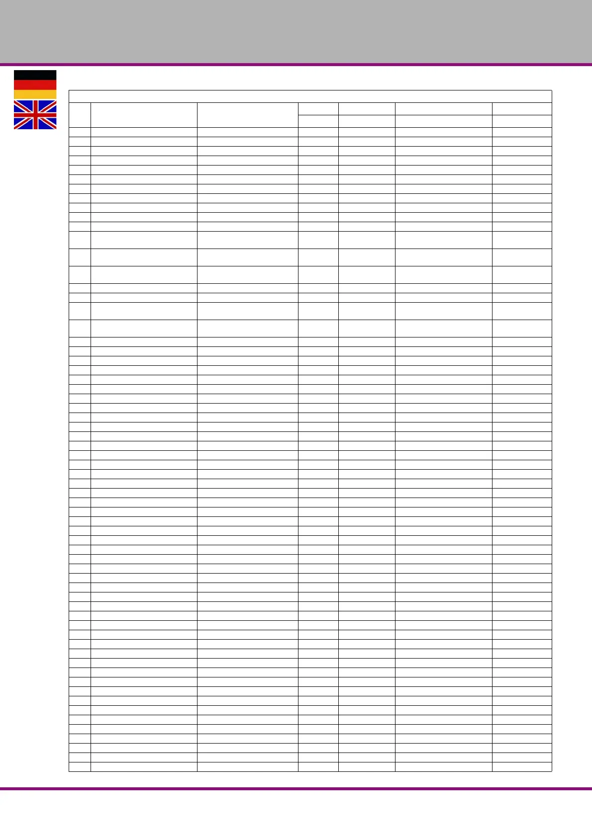 Ersatzteilliste Spindelantrieb - Spare parts list drive mechanism of the spindle