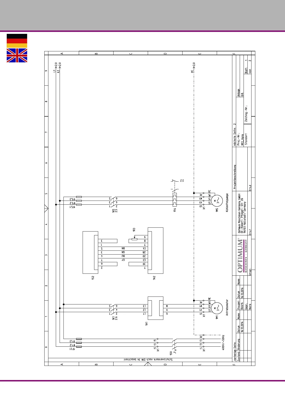 Optimum OPTIMILL MF 2V - Schaltplan 1 von 2 - Wiring Diagram 1 of 2