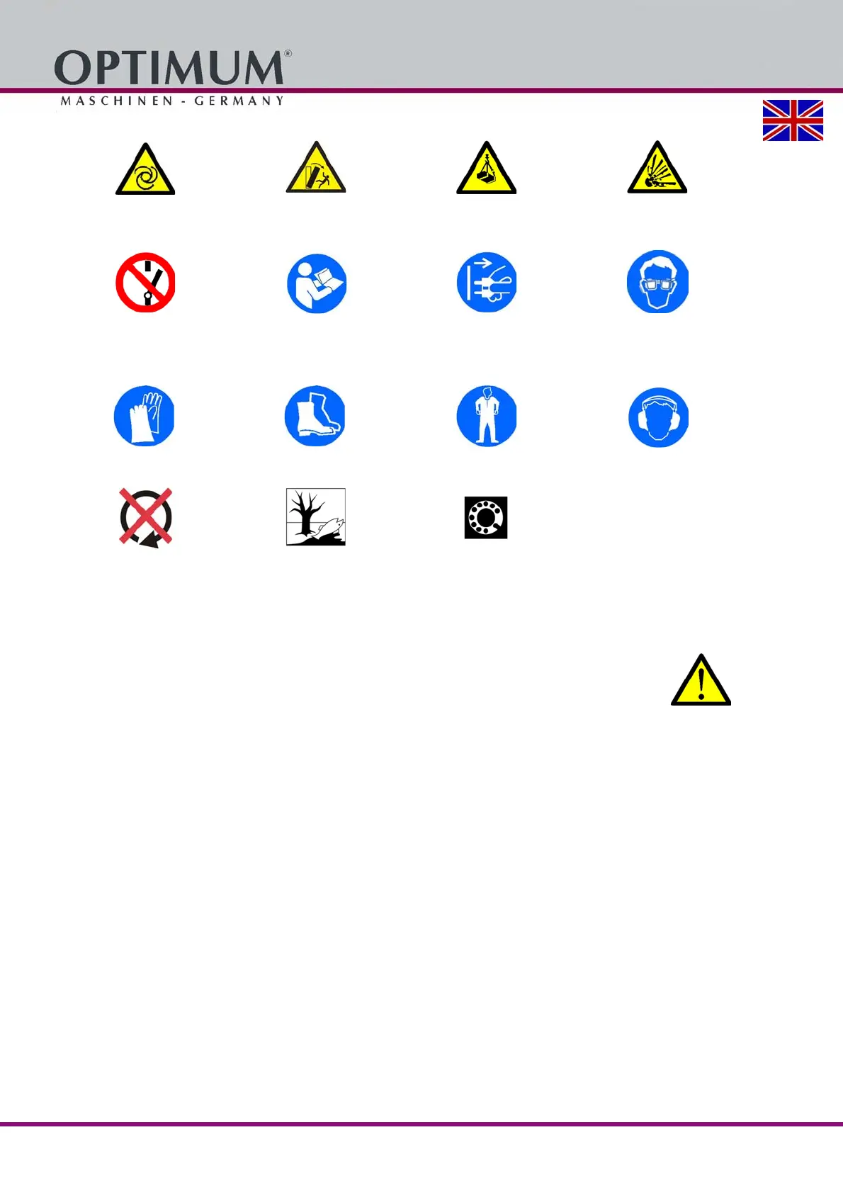 Wear protective gloves! Wear safety shoes! Wear a protective suit! Use ear protection!