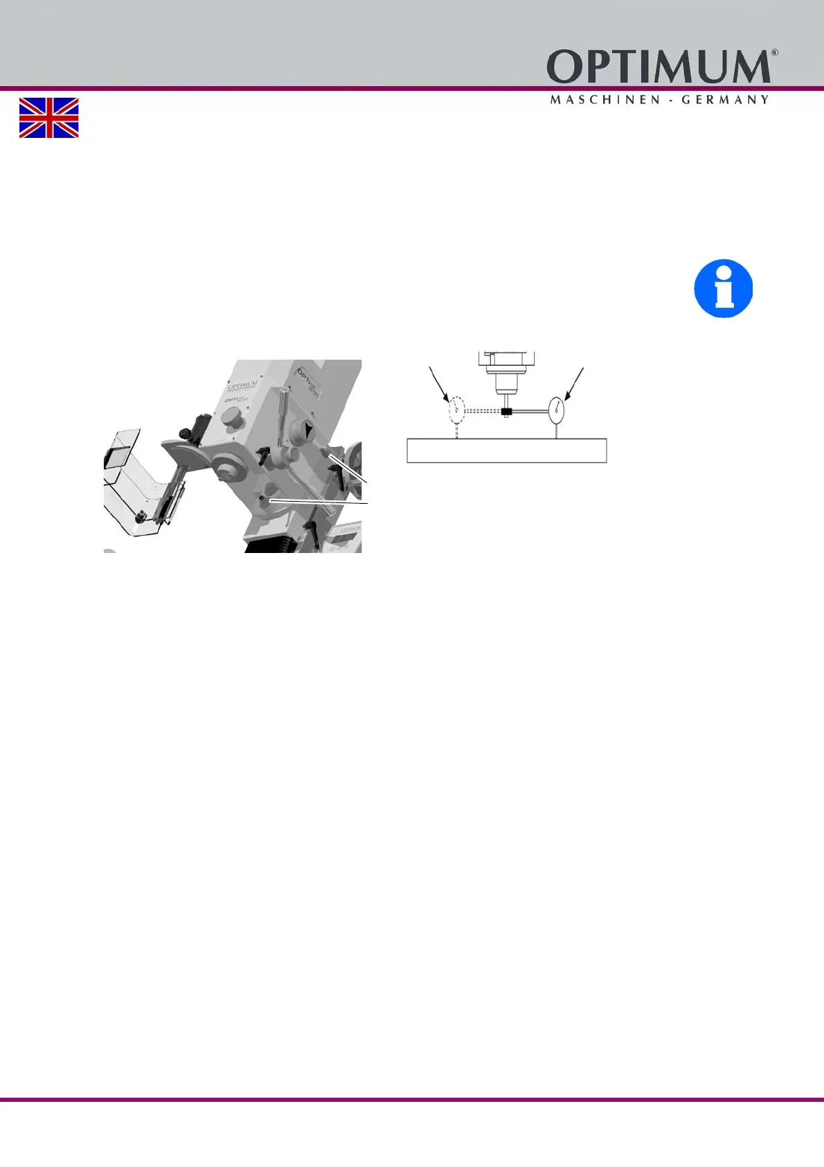 The milling head should be aligned after resetting to the initial position with a dial indicator so
