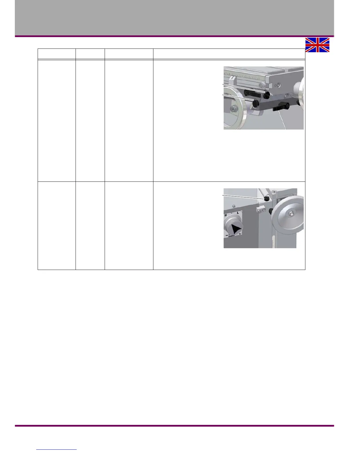 Turn the adjusting screw of the respective taper gib in the