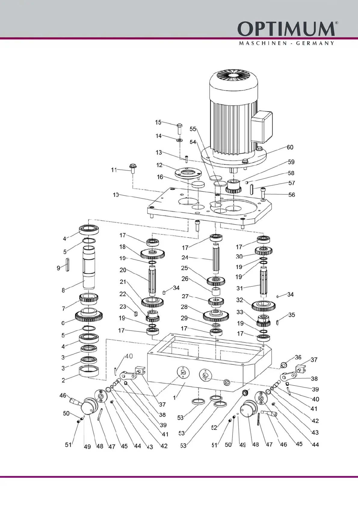 Optimum Optimill MT 50 - Vertical Milling Transmission Gear Parts List
