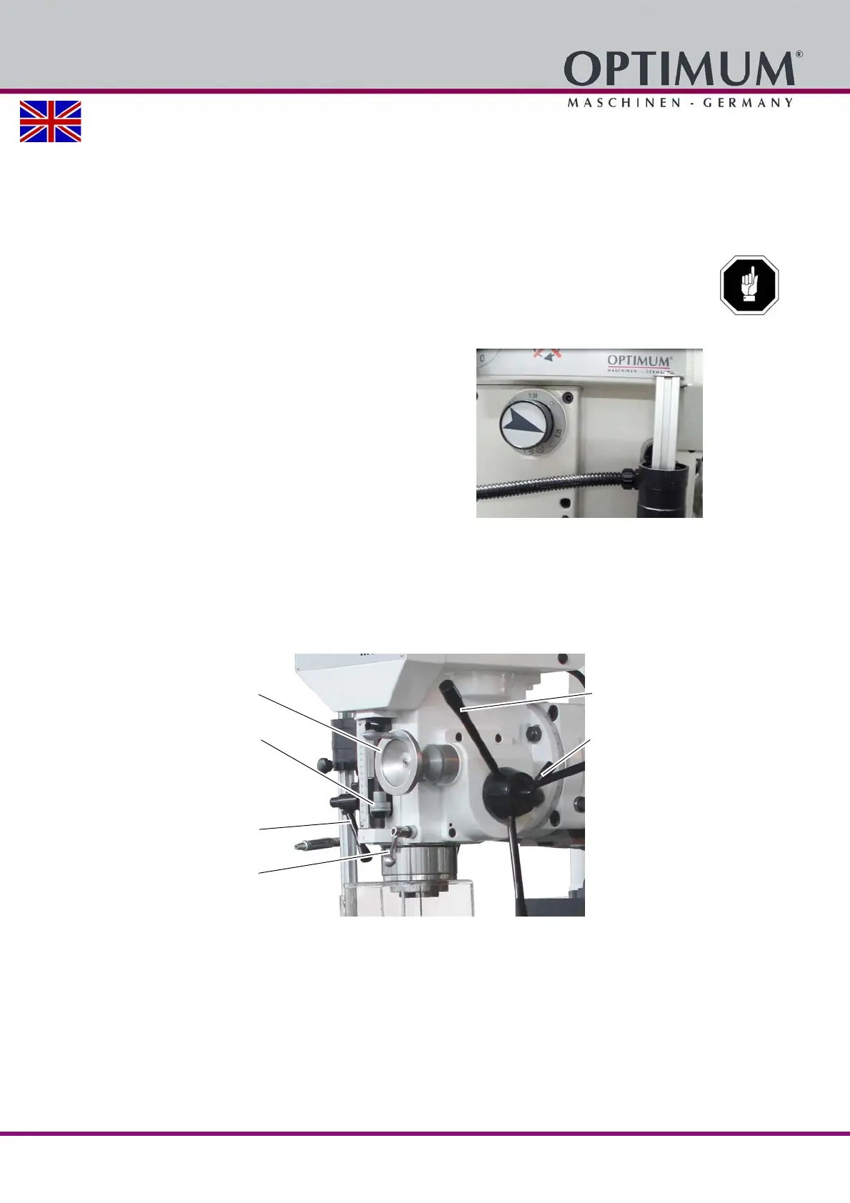 For all movements of the spindle sleeve you must first loosen the tightening lever!