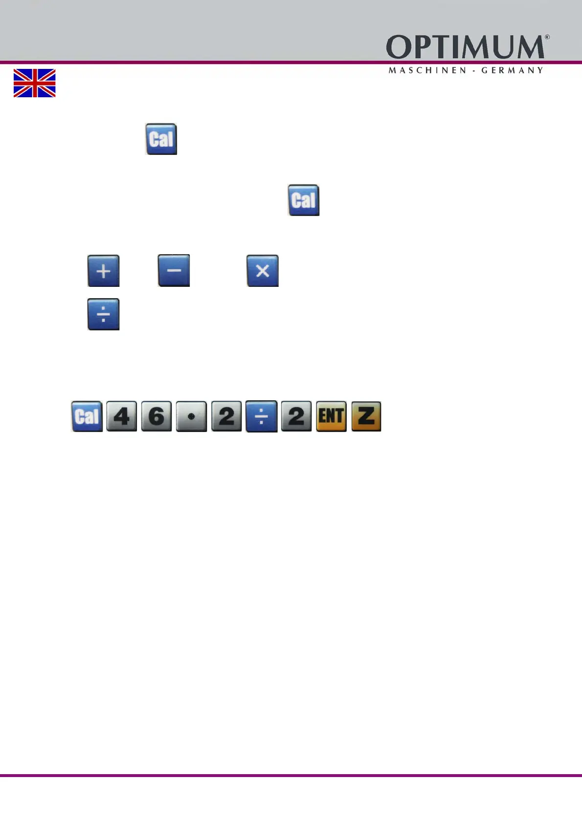 Press the following keys in the order shown in order to divide the number 46.2 by 2, and trans-