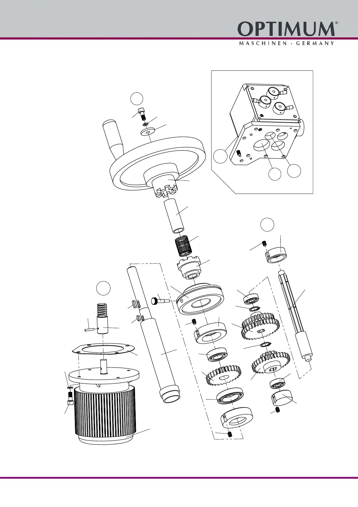 Optimum OPTImill MT 60 - Vorschubgetriebe X-Achse - Feed Gear X-Axis 2 - 3