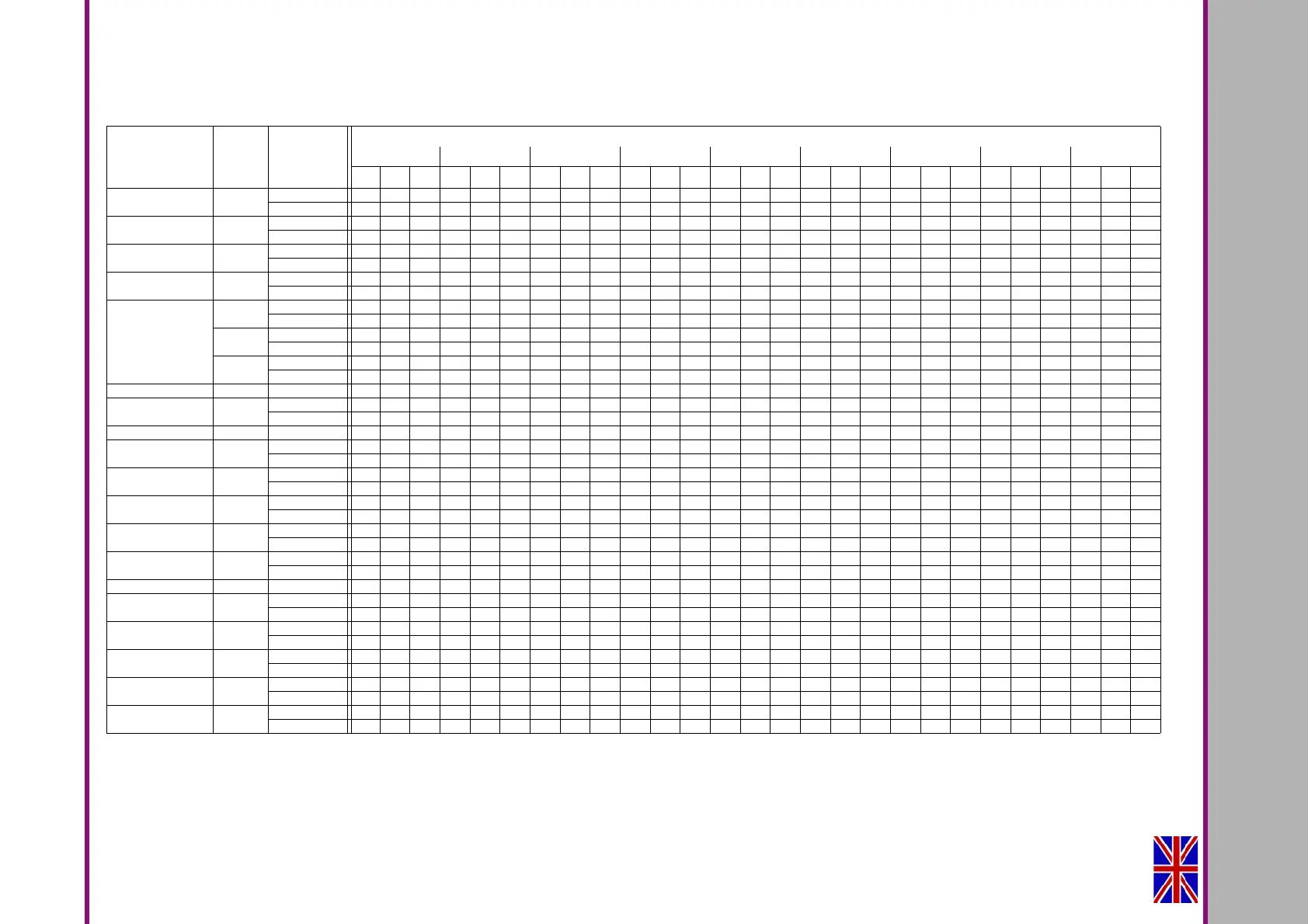 mm the values must be reduced by 1 stage of the row R5 by approximately 40%.