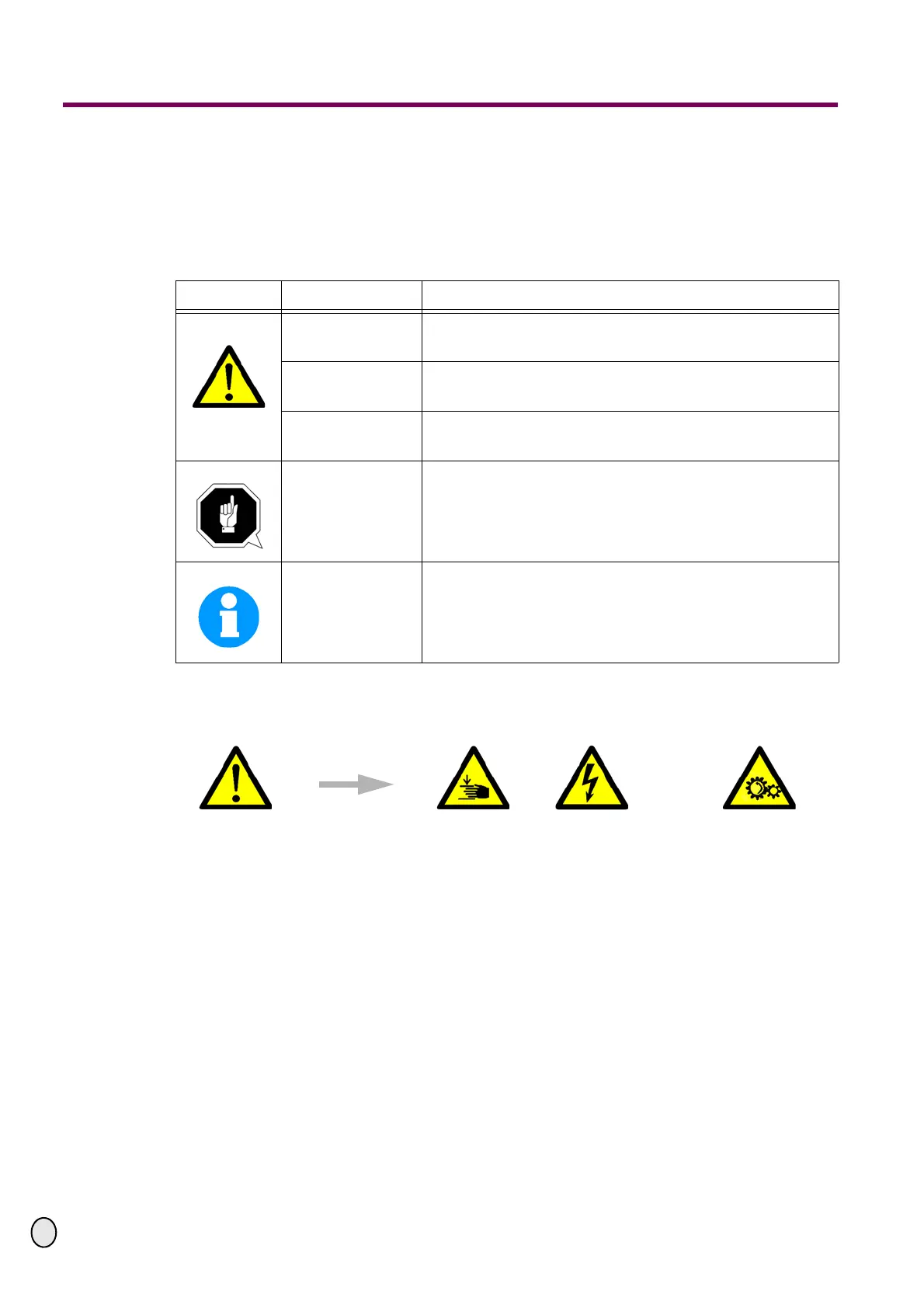 We classify the safety warnings into various levels. The table below gives an overview of the