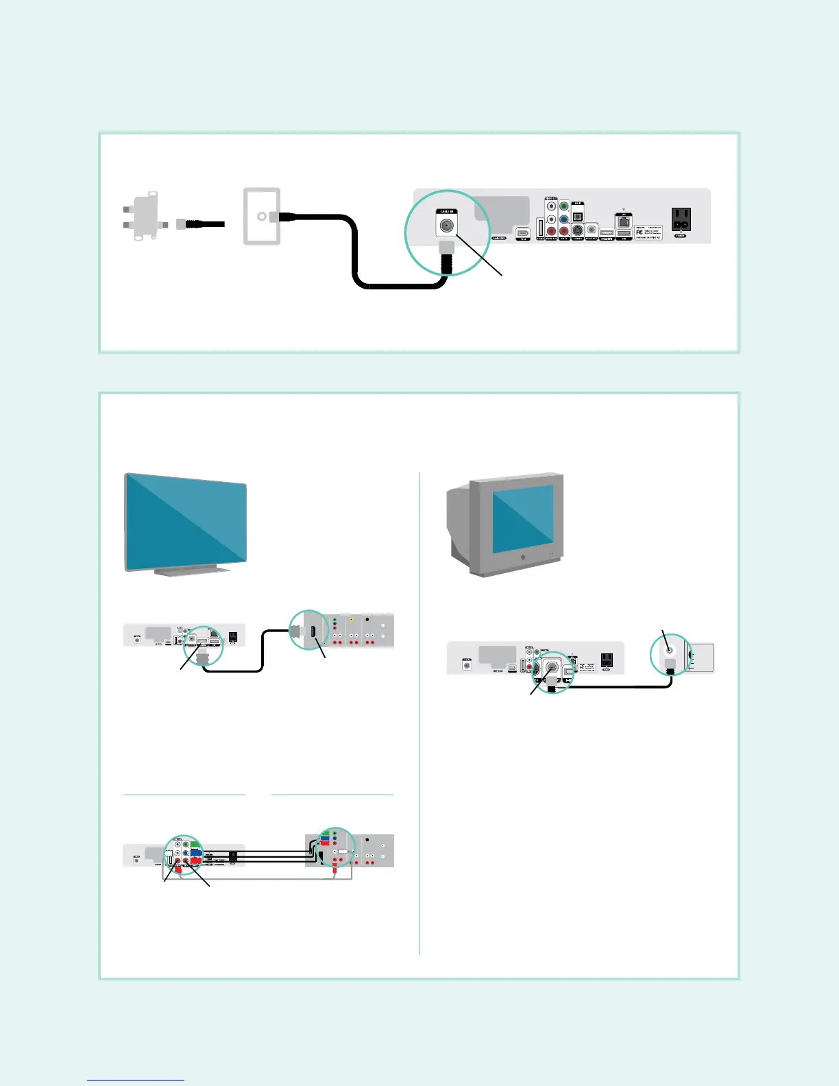 • Connect the coaxial cable from the cable splitter or wall to the “CABLE IN” port on the back of the digital