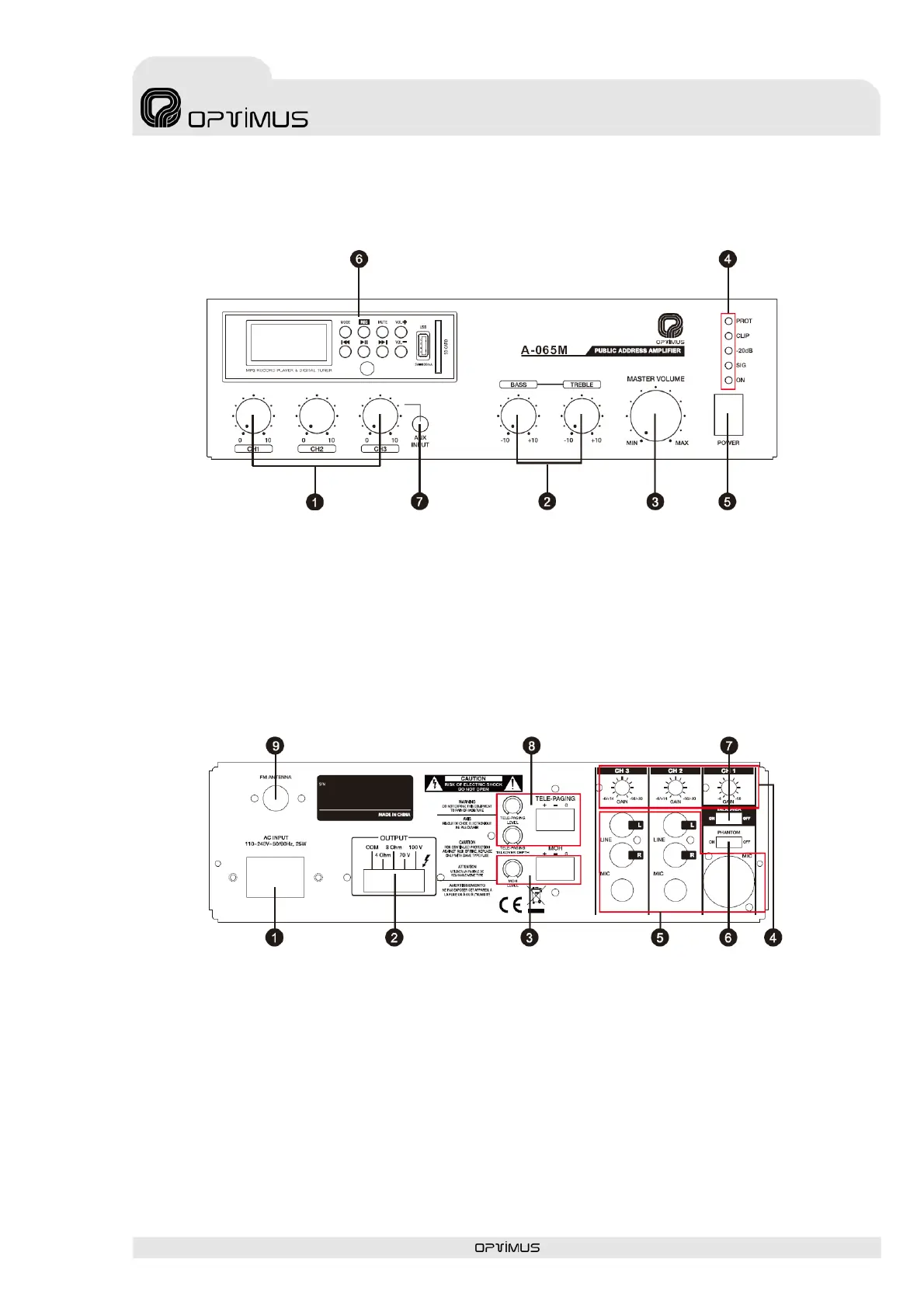 2. Speaker outputs connector (COM, 4-Ω, 8-Ω, 70 V, 100 V).