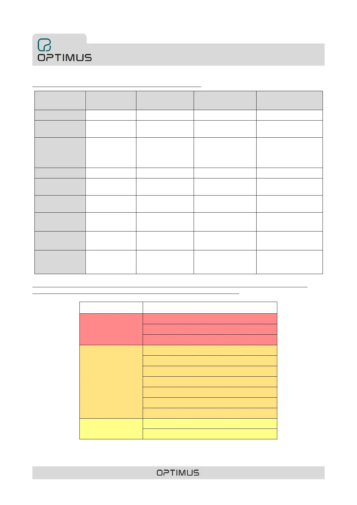Optimus Compact - System Alarms Table: Module and Contact Errors