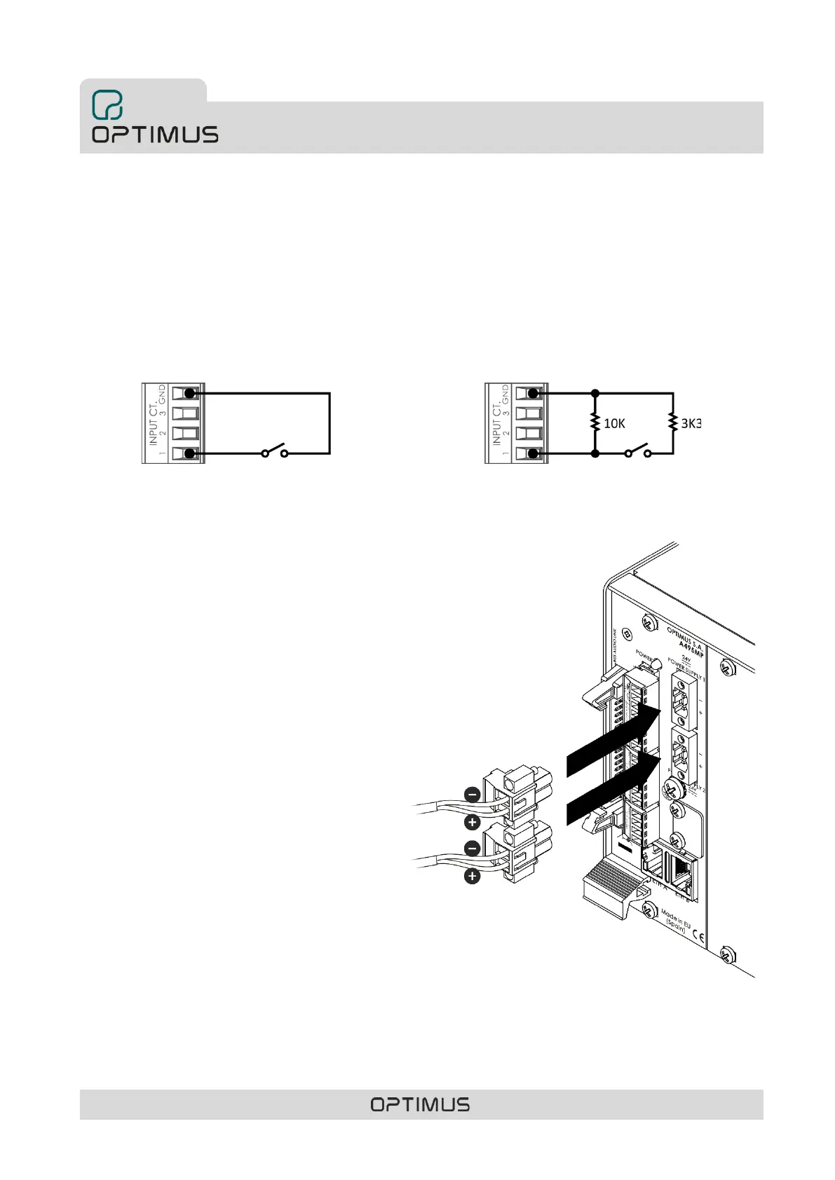 Contactos de entrada. La funcionalidad y el estado de reposo (NC/NO) se configuran a través del software de configuración.