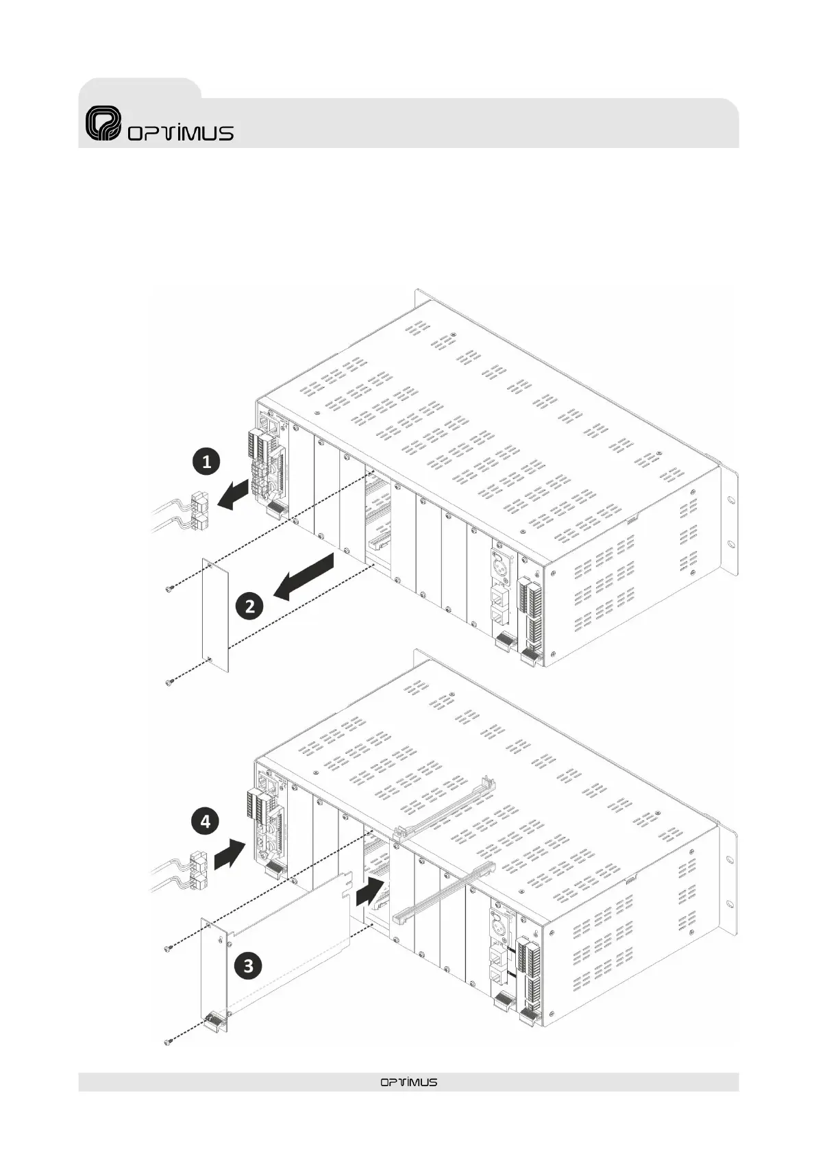 3) Insert the card by fitting it into the slot guides and fasten it by means of the fastening screws.