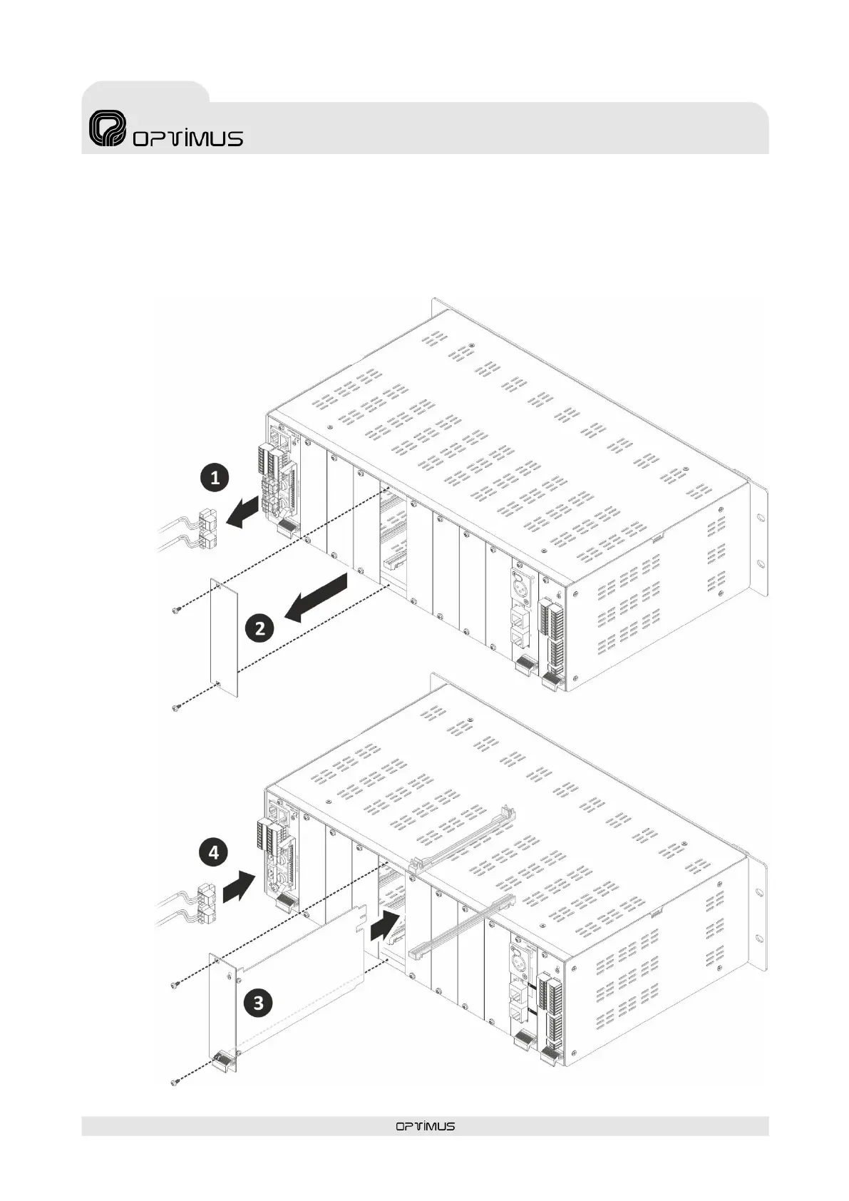 3) Inserte la tarjeta encajándola en las guías del slot y fíjela mediante los dos tornillos de sujeción.
