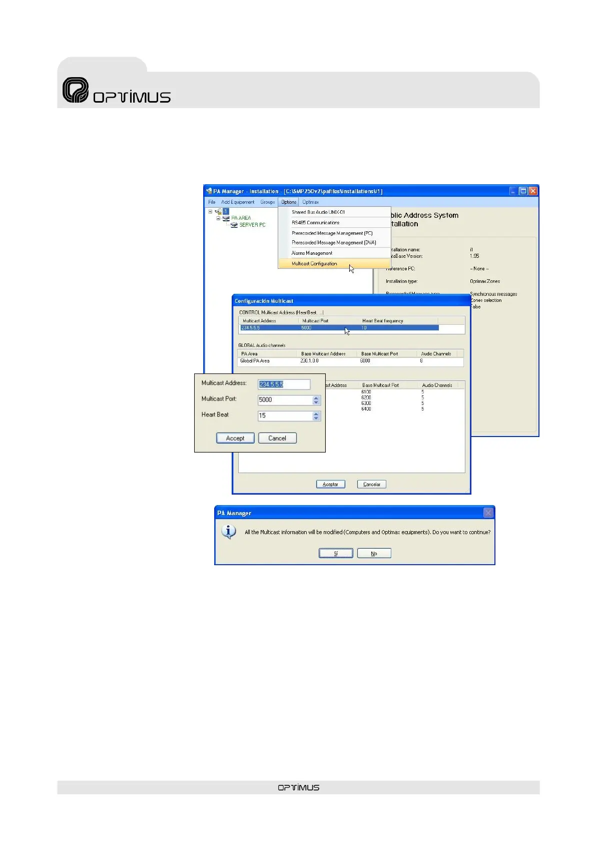 ATTENTION: The values that are modified from the multicast configuration window affect all the equipment units in the