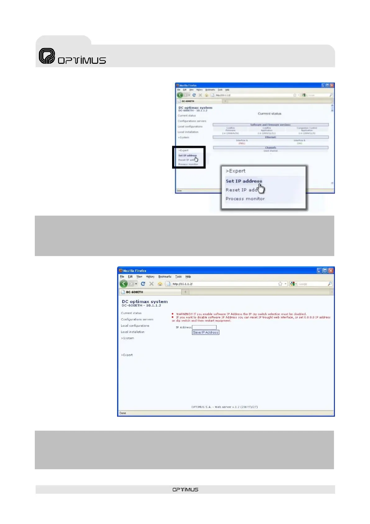 If the IP is activated by software, the functionality of IP address selection by DIP switches will be deactivated.