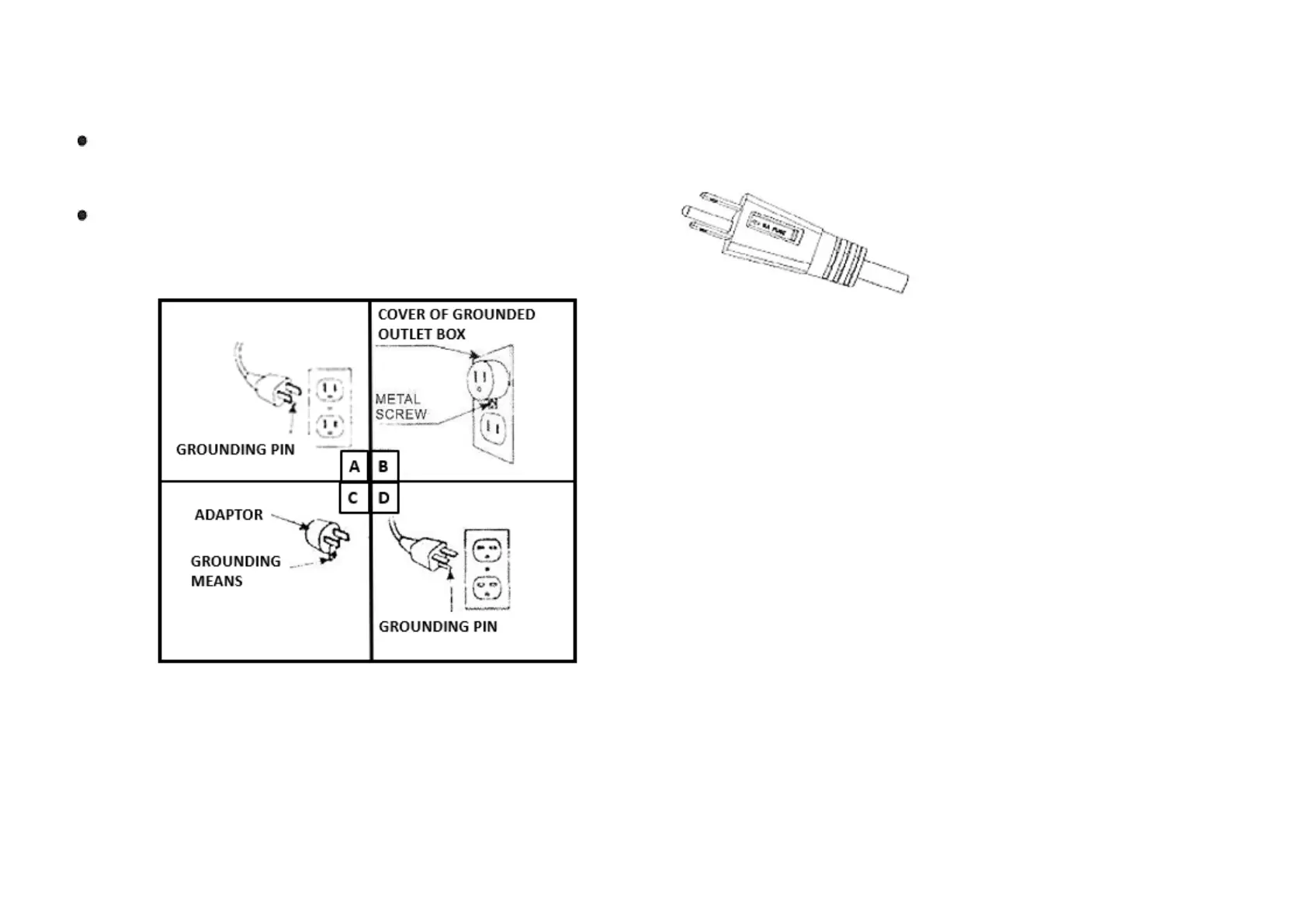 The cord has a plug as shown in Figure A. See Figure 1 for grounding instruction. An