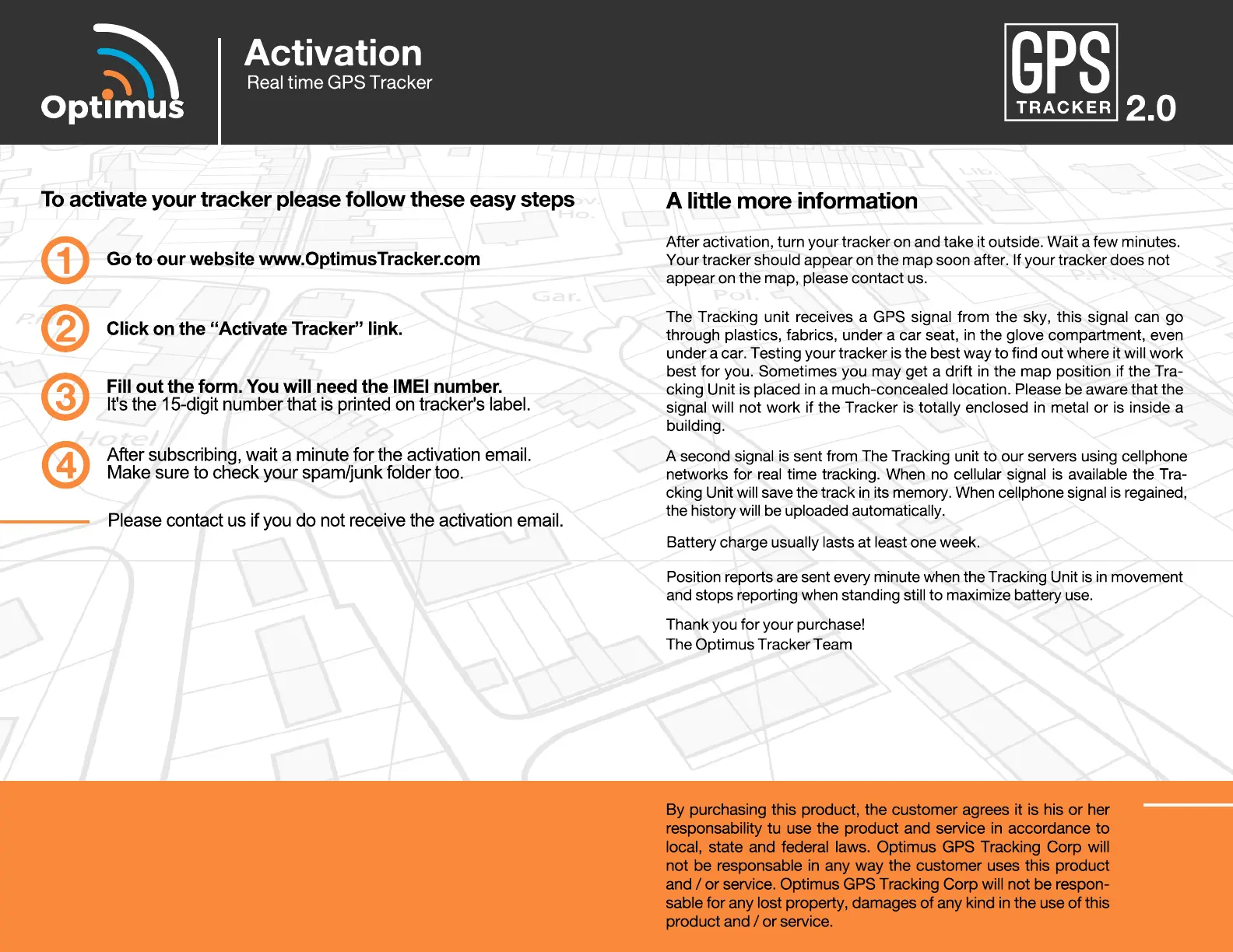 and / or service. Optimus GPS Tracking Corp will not be respon-