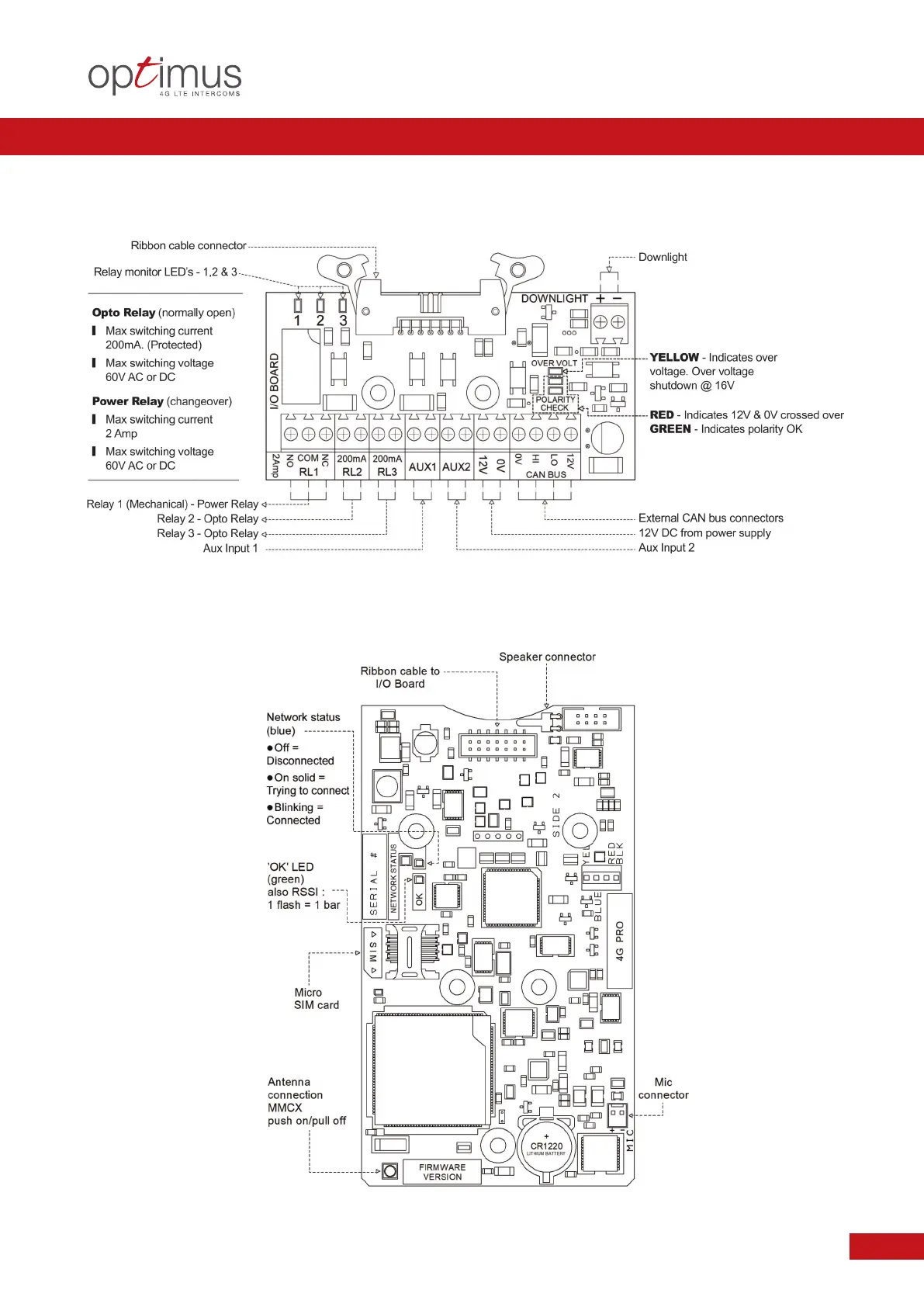 Optimus Range - Applications and Connections; 4 G LTE I;O Board Connections; 4 G LTE PCB Connections