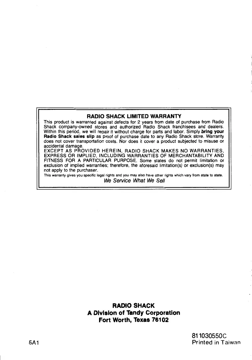 RADIO SHACK LIMITED WARRANTY