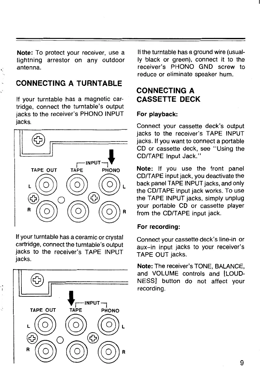 jacks to the receiver's TAPE INPUT