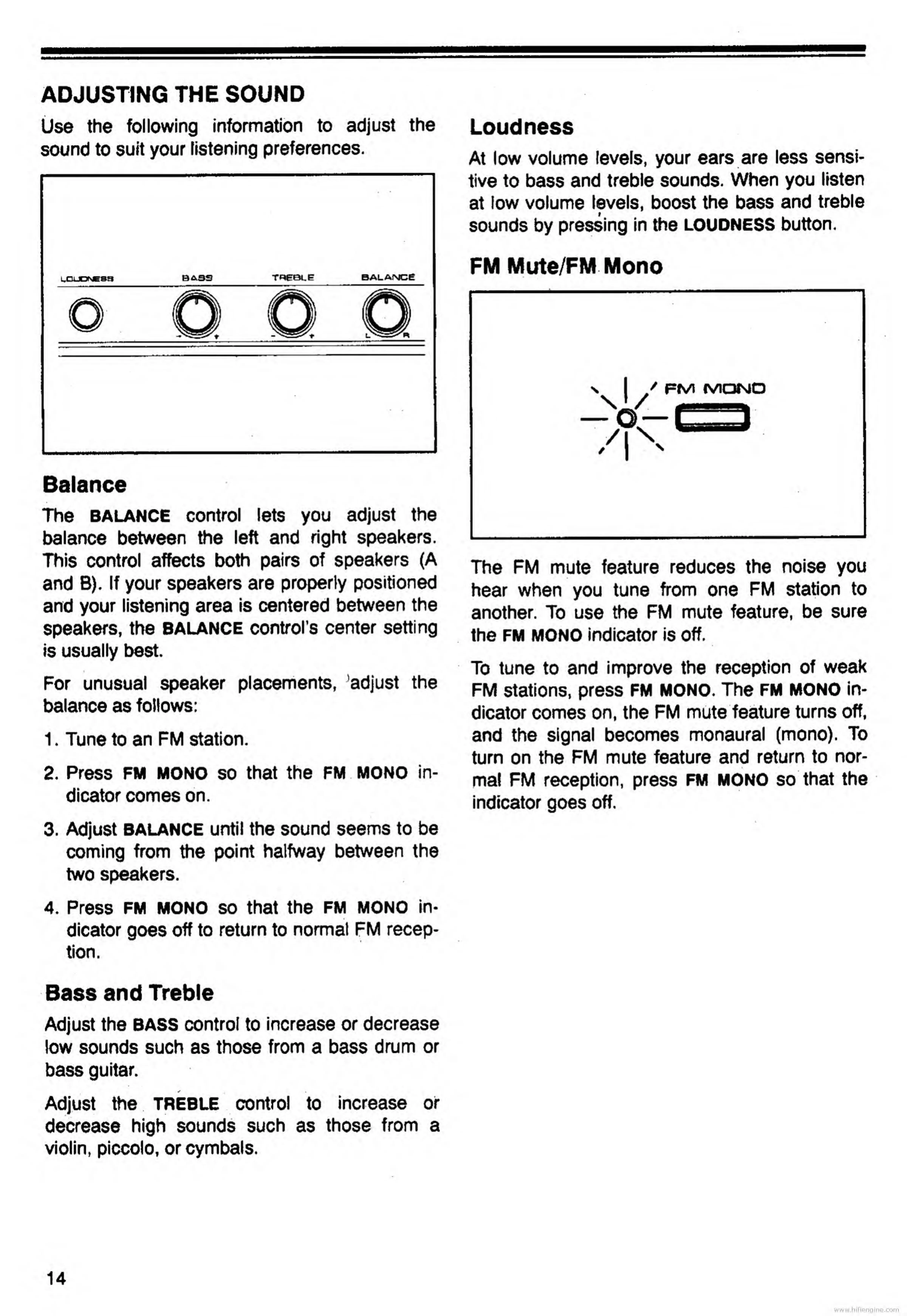 Optimus STA-795 - Adjusting the Sound; Balance; Bass and Treble