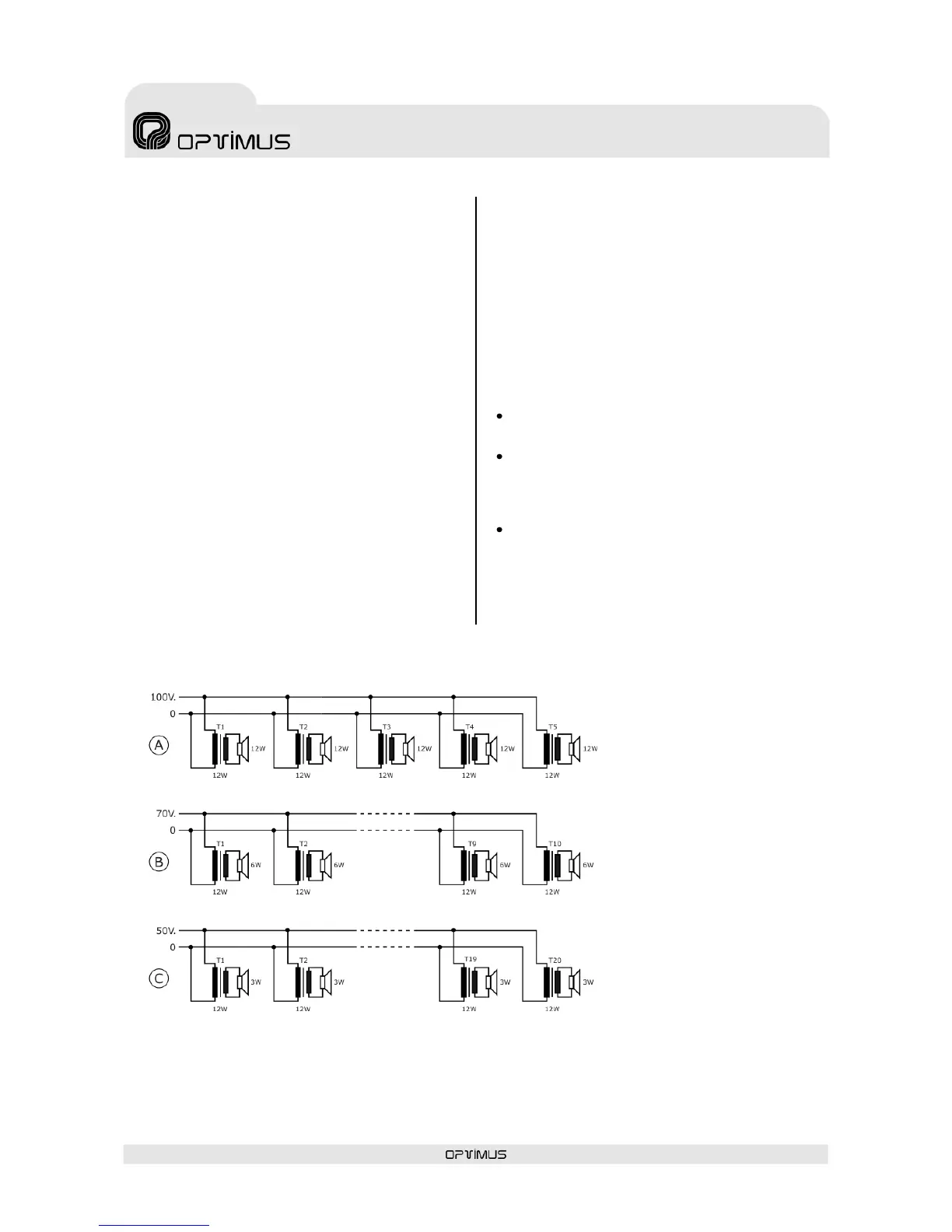 When working with the 50, 70 and 100 V lines, it