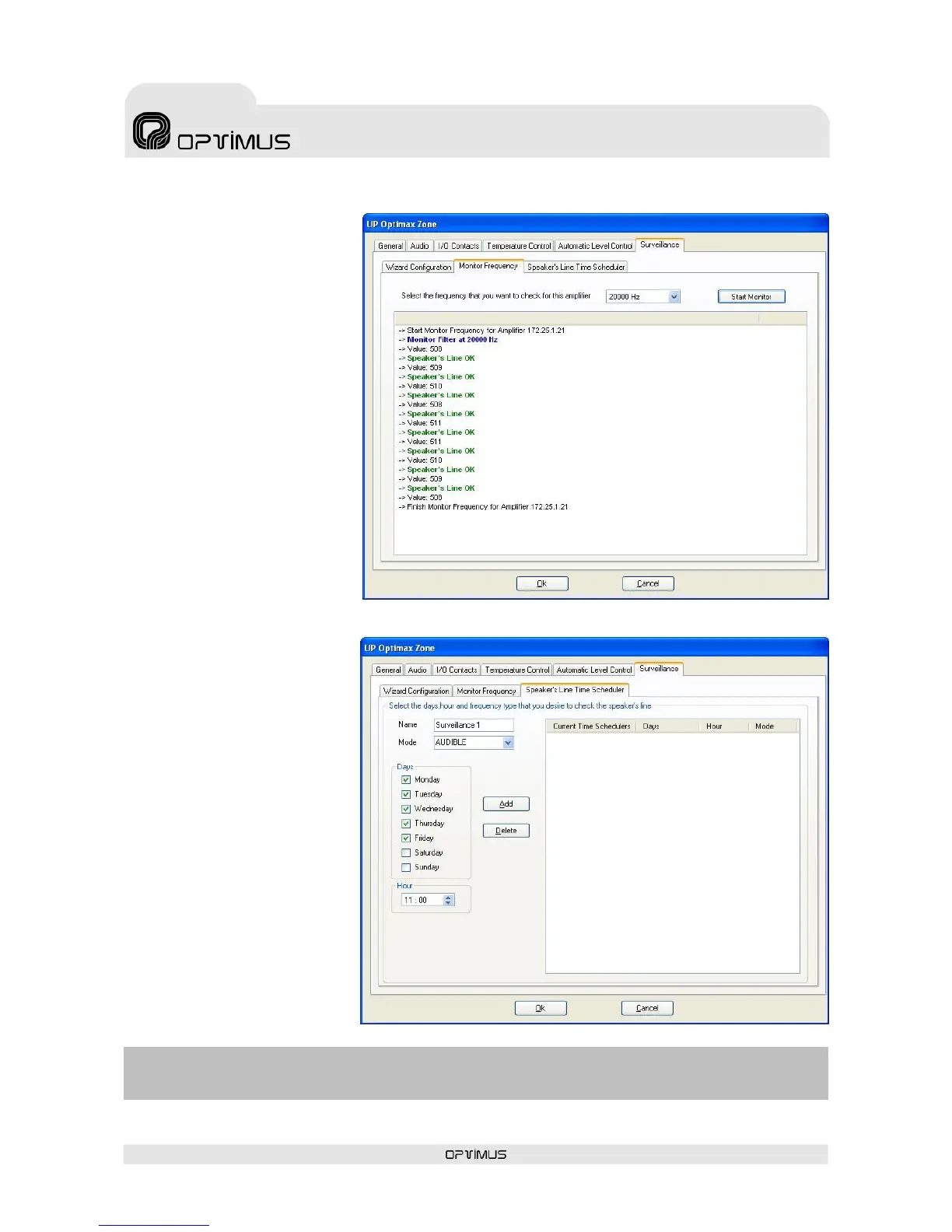 ATTENTION: Scheduling of loudspeaker line surveillance only functions in installations with a Server PC, since it