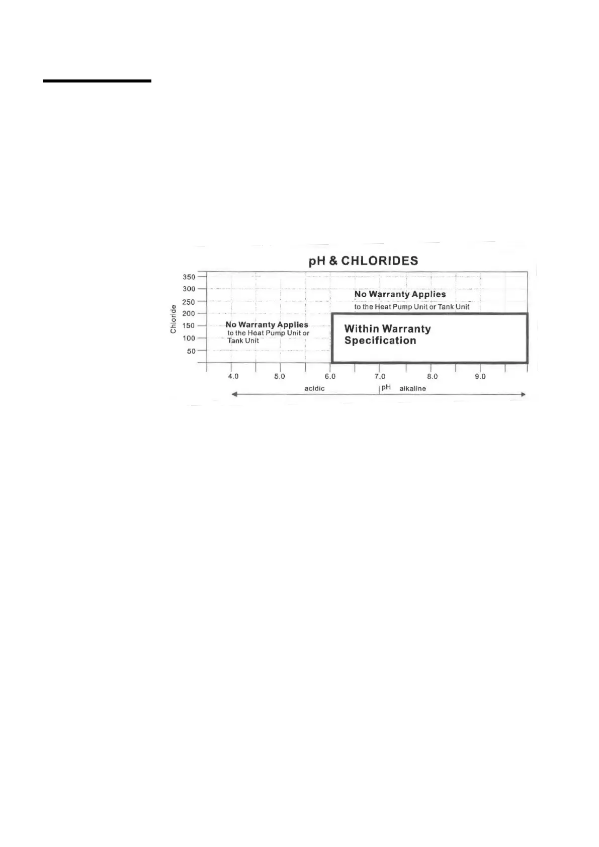 chloride level exceeds 200mg/litre, warranty does not apply to the heat pump unit and tank unit. pH is a