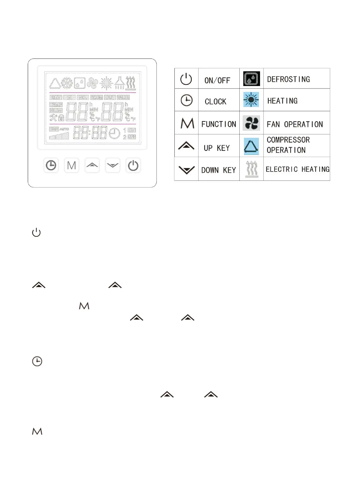 state of timing on/off setting. Combining the “ ” and the “ ” keys, the start and shutdown time of