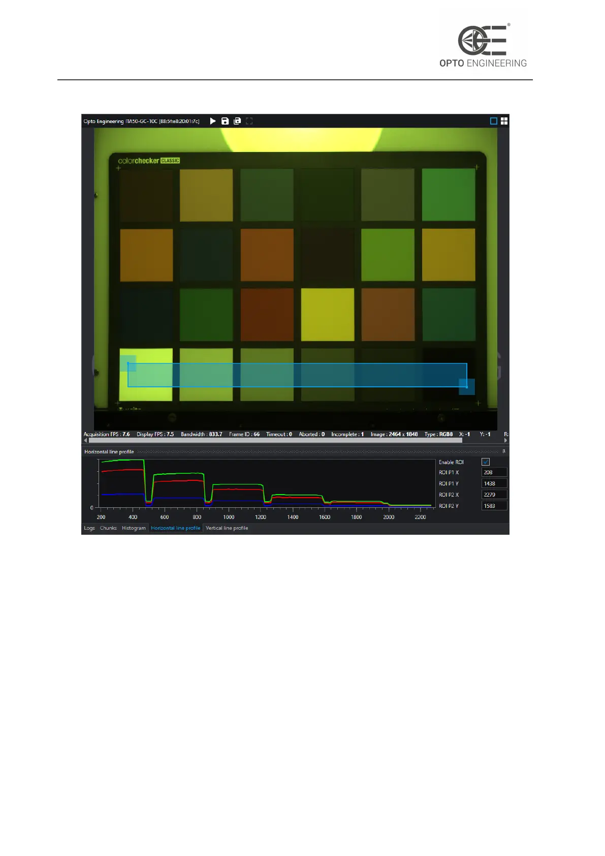ROI (including only the greyscale tiles of the color checker) and displaying the