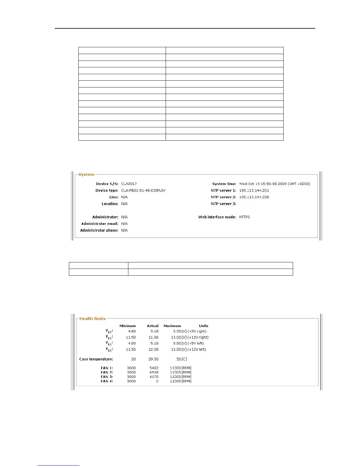 Table 3 - Summary System information