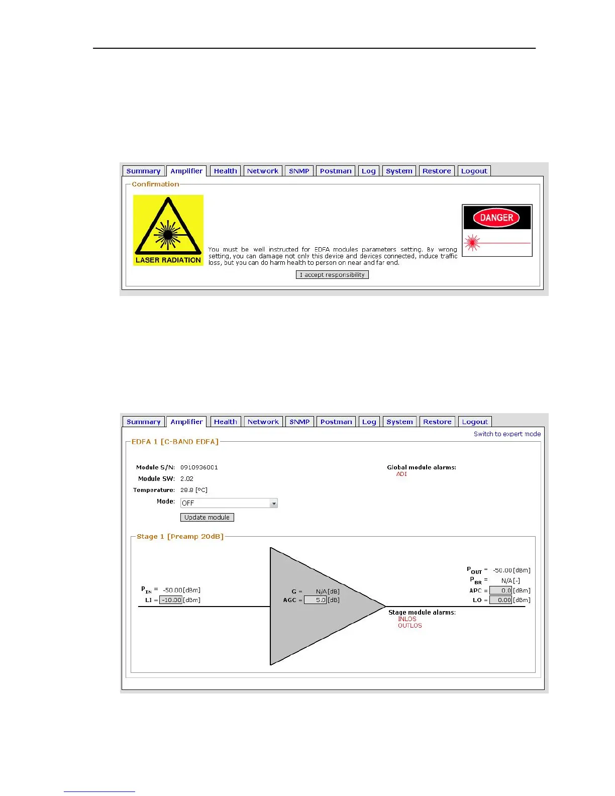 The component part “Amplifier” allows change optical parameters of EDFA unit