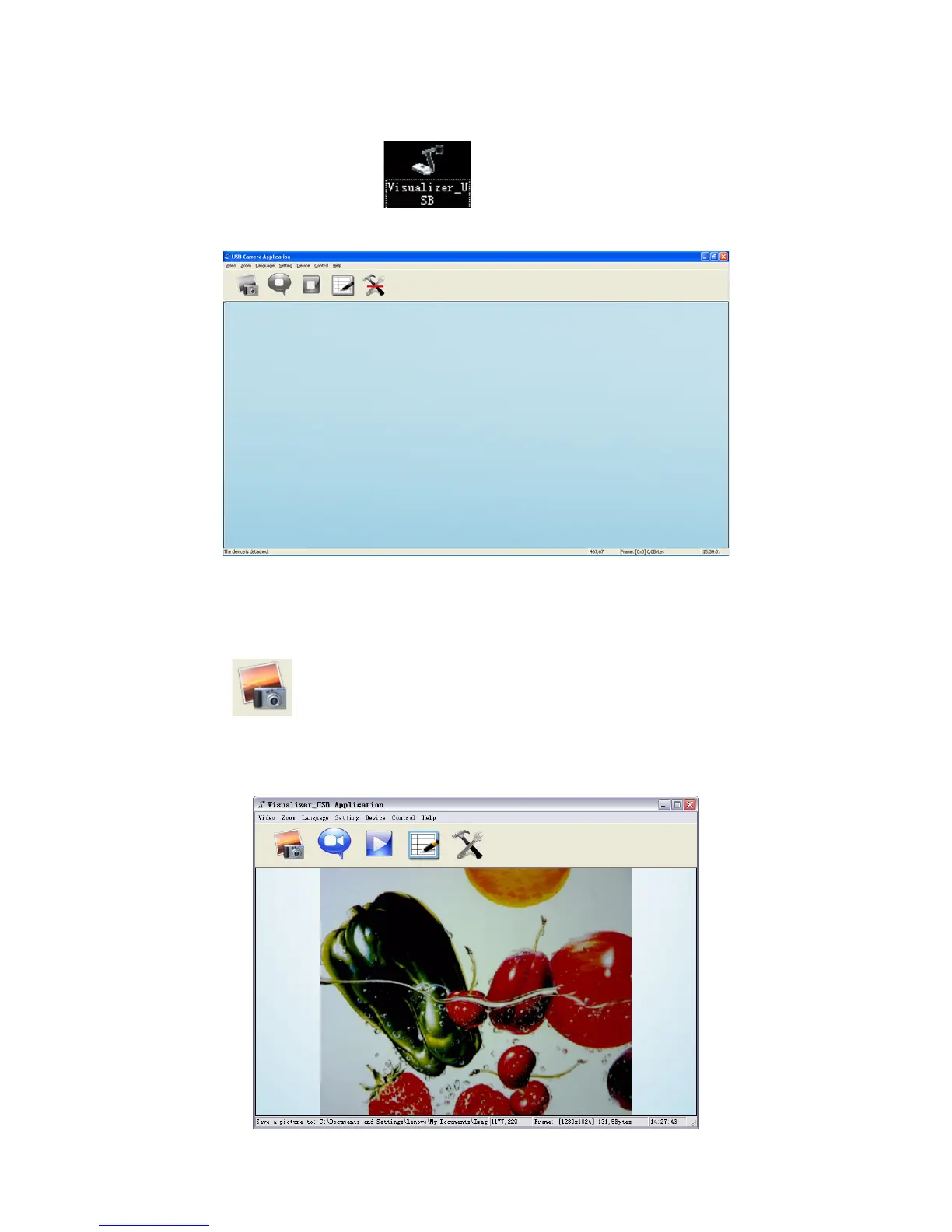 Optoma DC300 - Software Usage: Starting and Capturing; Launching Software and Capturing Images;Video