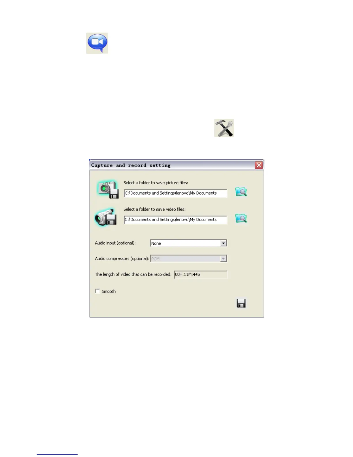 To set a d i ffer ent p a t h for the Image/Video to be saved, click icon on the left side of