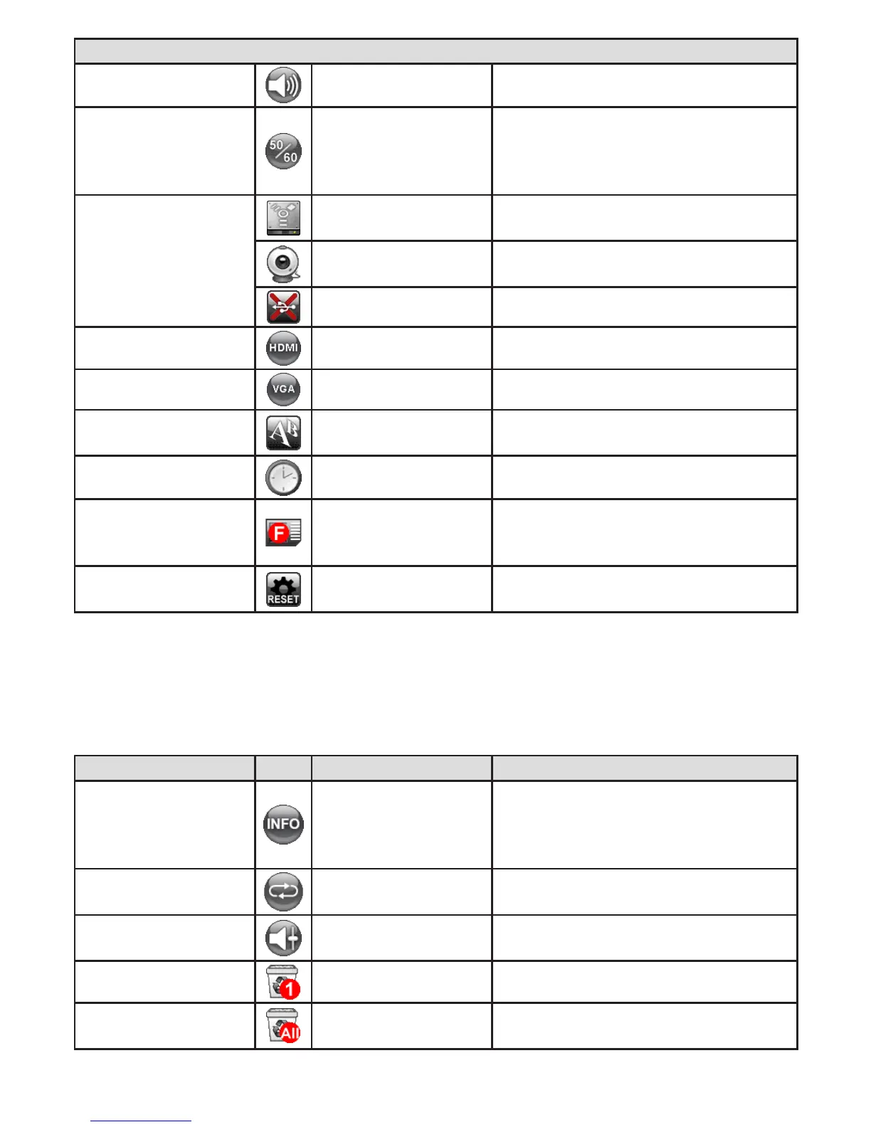 Function Icon Option Description