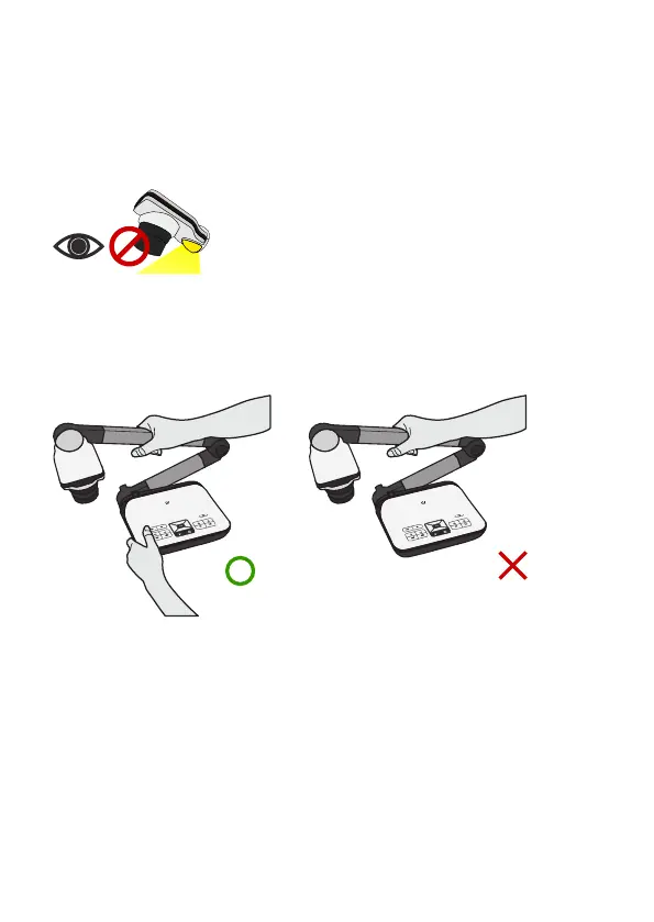 transportez jamais l’appareil en utilisant le bras ou la tête de la