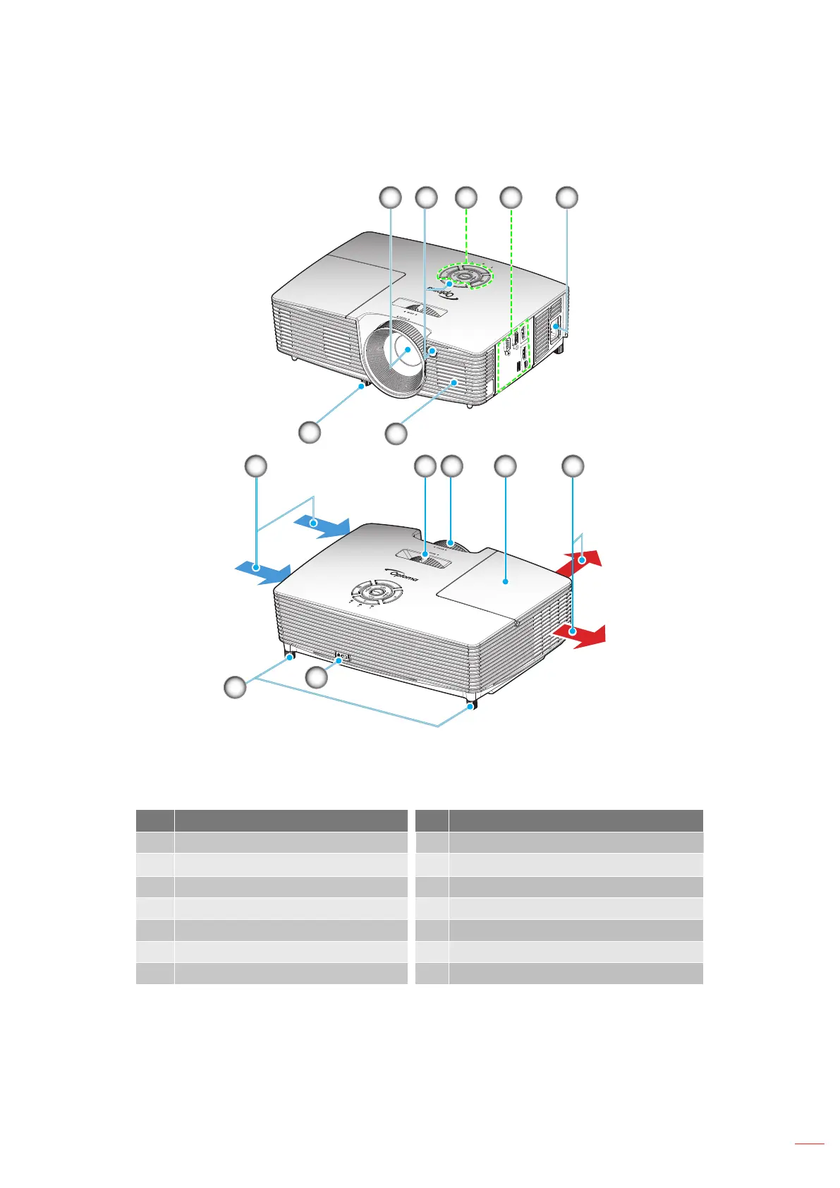 Do not block projector inlet or outlet air vents.Note: