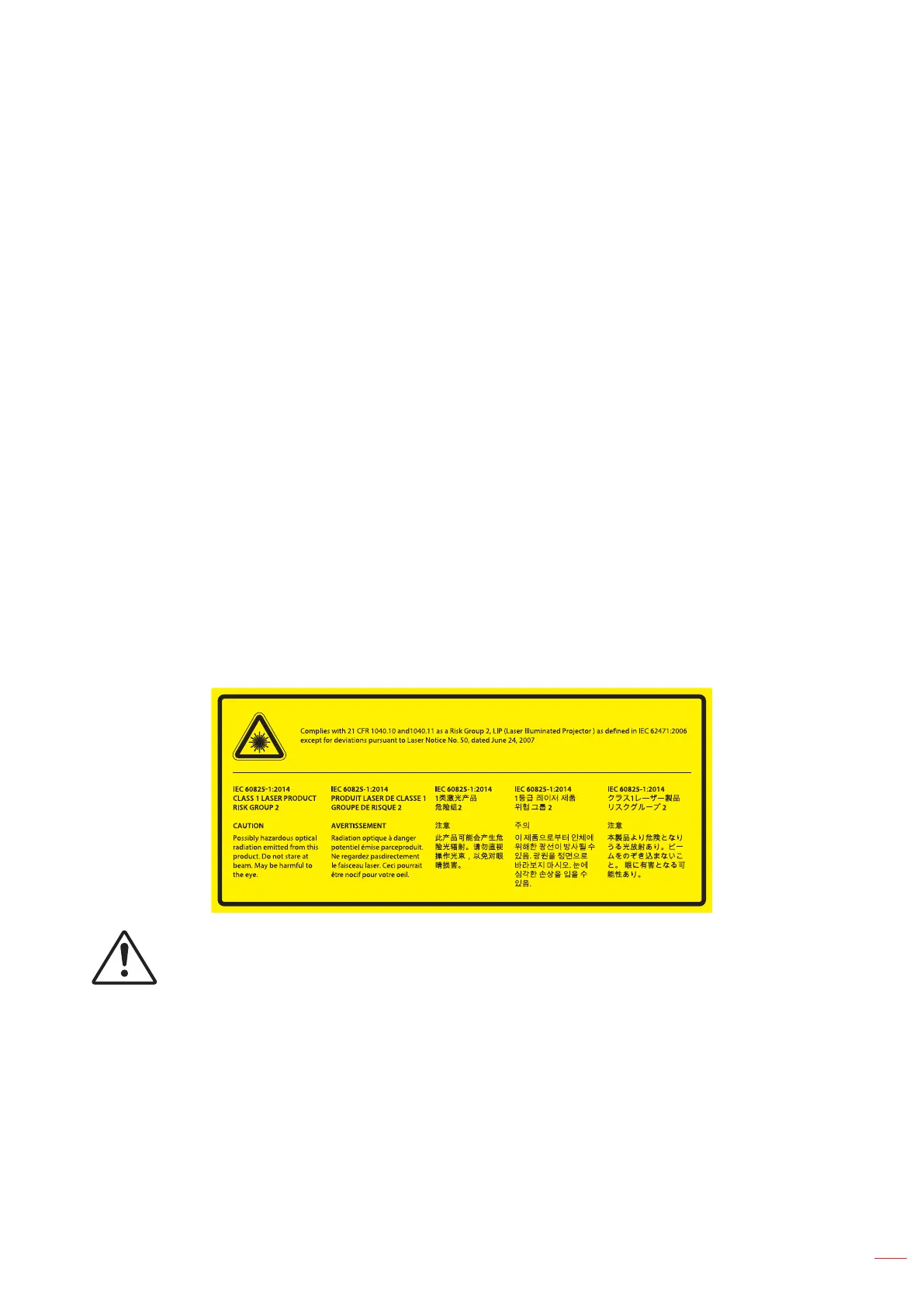 also complies with 21 CFR 1040.10 and 1040.11 as a Risk Group 2, LIP (Laser Illuminated Projector)